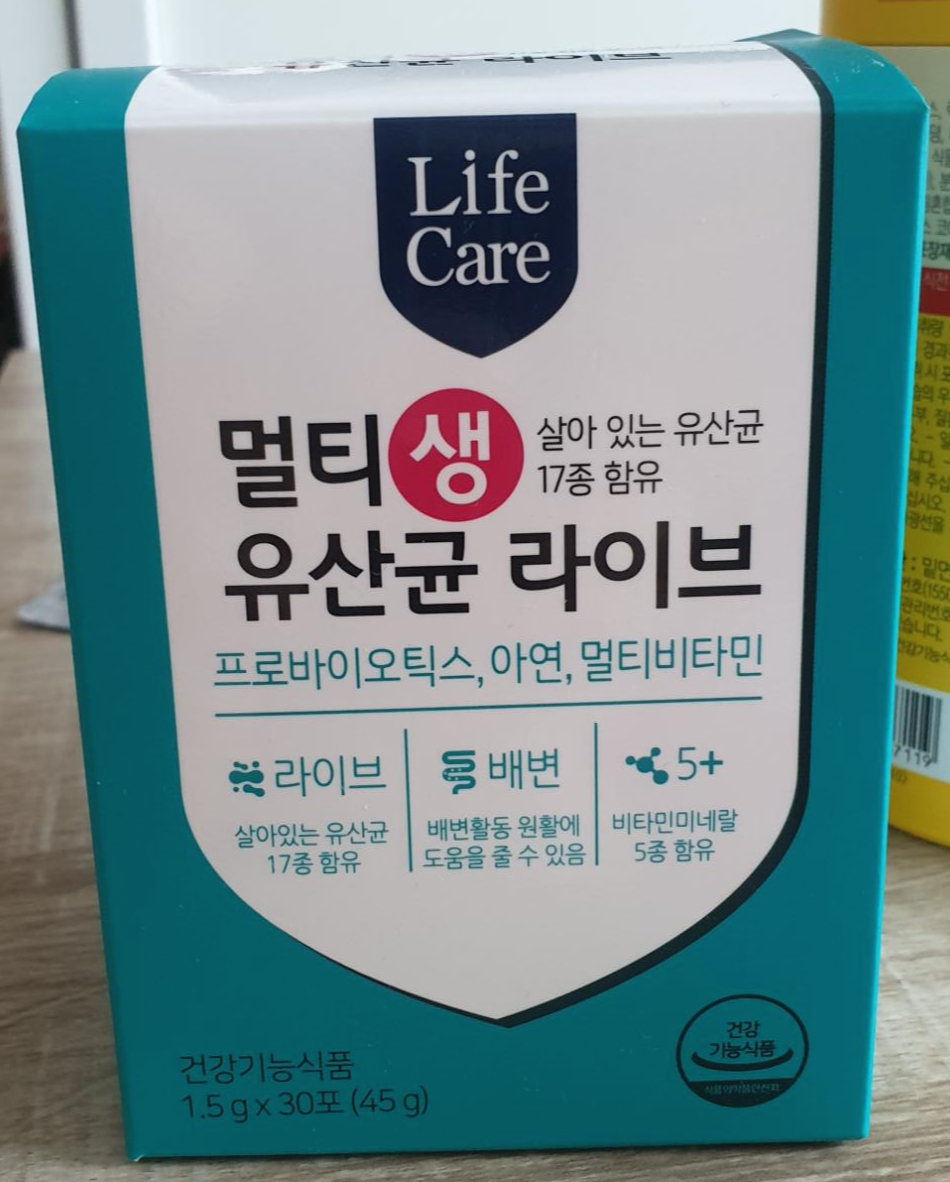 이 라이프케어에서 나온 멀티생유산균라이브는 직접 구매해서 먹는 유산균 제품이 아닙니다. 최근에 콜라겐을 구매하였는데 위의 30포짜리 멀티생 유산균 라이브도 사은품으로 주었죠.
