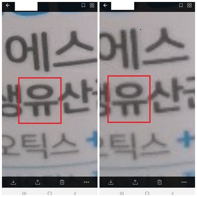 카카오톡 고화질 전송과 일반화질 사진전송의 화질 차이(확대 본)